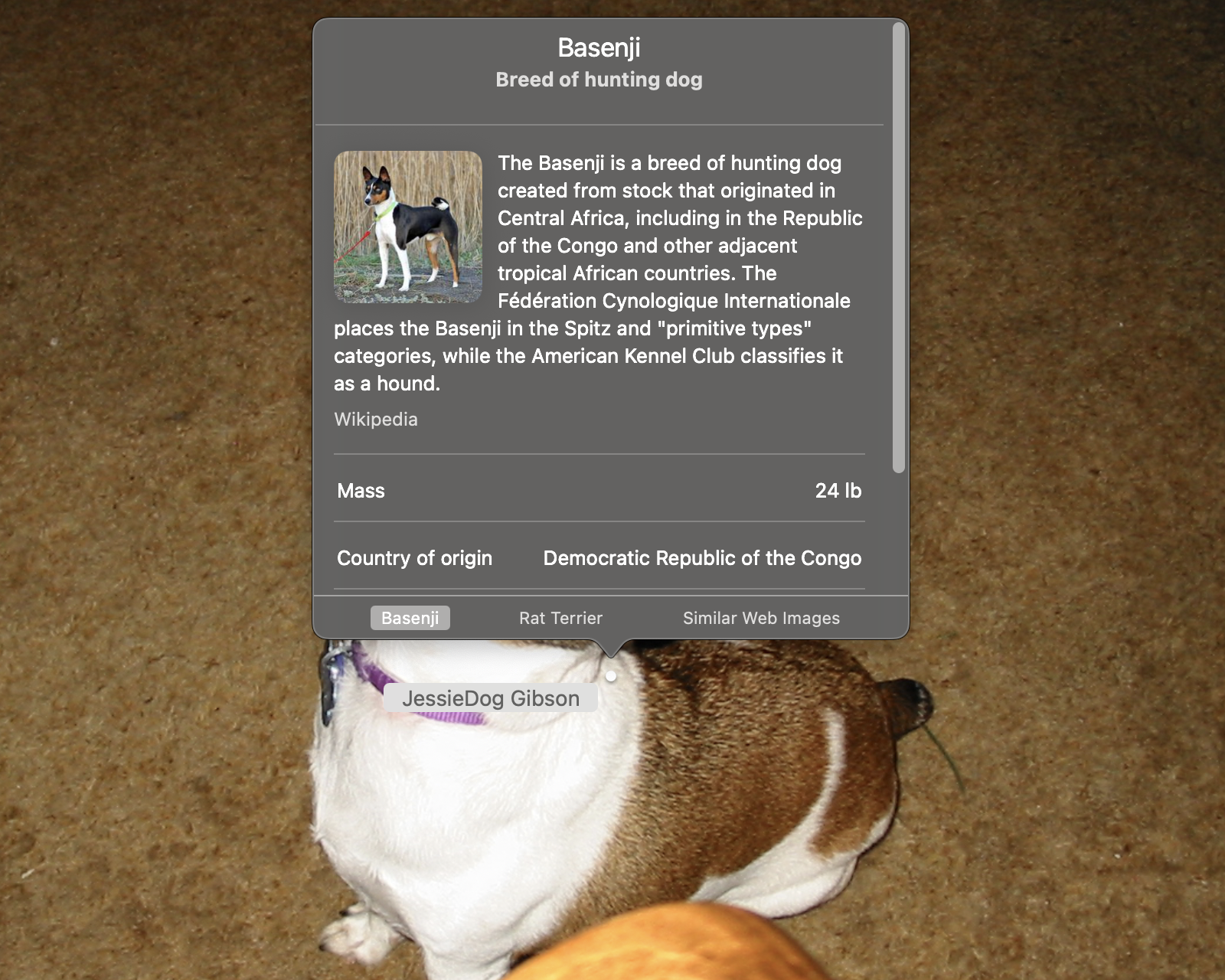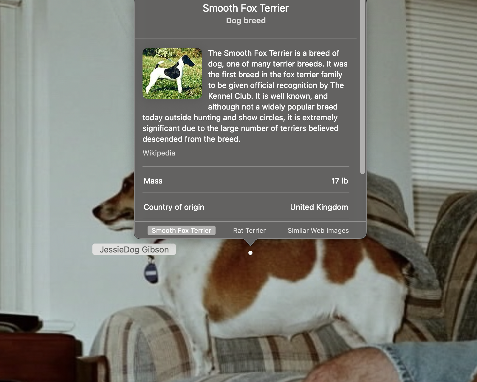 | ↑1 | You might know the Jack Russel as the Parson Russel Terrier, the Russel Terrier, or “that ornery creature that won’t let go of the rabbit out in the yard” |
